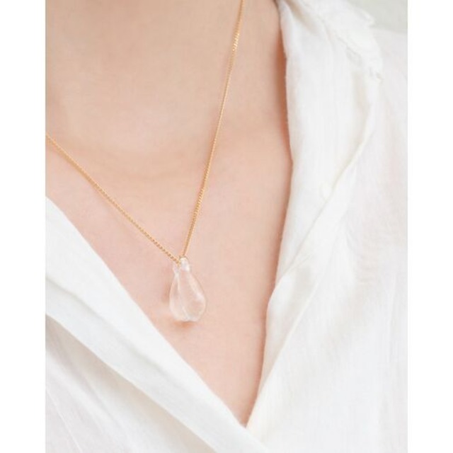 つぼみ型のガラスが光を集めてきらめく姿は、揺れ動くともし火のように、静かにその存在を感じさせてくれます。 軽やかな存在感で、日常の装いにさりげない華やかさをプラスします。ガラスの透明感と繊細なデザインが、どんなスタイルにも自然に馴染みます。 ガラス大きさ:9×12mm チェーン長さ:450mm ◆アジャスターカンのスライドボールのため、ネックレスの長さが自由に調整できます。 素材・成分 本体:ガラス 金具:真鍮+ゴールドメッキ 原産国:日本