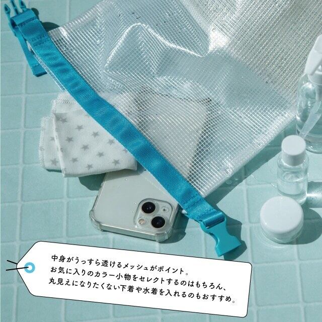 撥水性と収納力を兼ね備えた、メッシュPVC防水バッグ