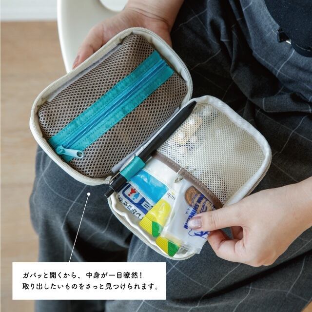片手に納まるサイズのポーチは使いやすさ抜群です。