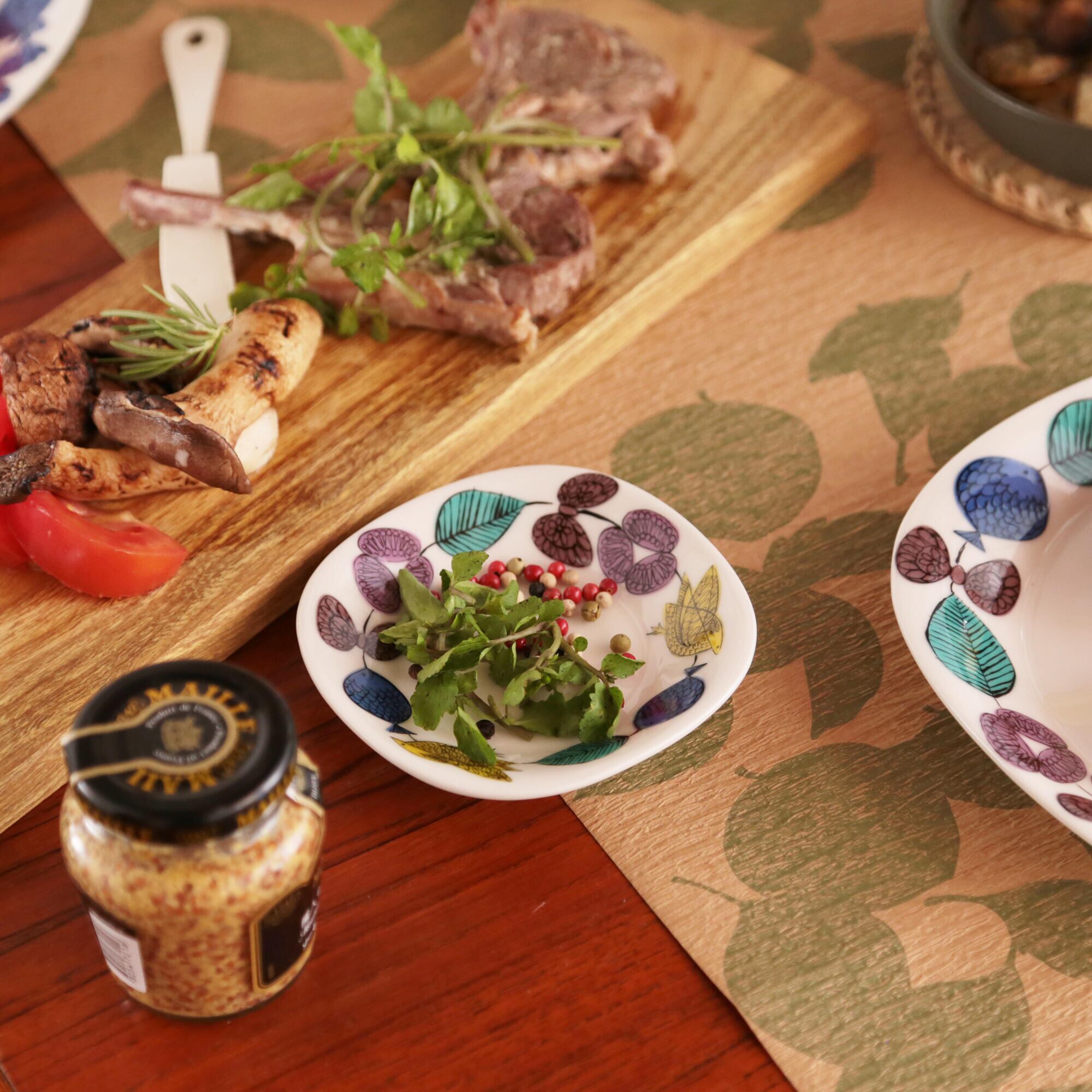 プレートの縁に入った柄は、盛りつけた料理をより良くみせて食卓を楽しくしてくれます。