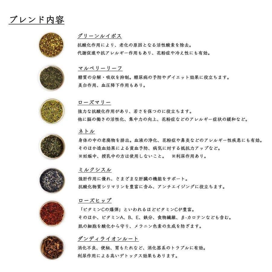 抗酸化作用が豊富なハーブをたっぷりとブレンドしたハーブティーです。