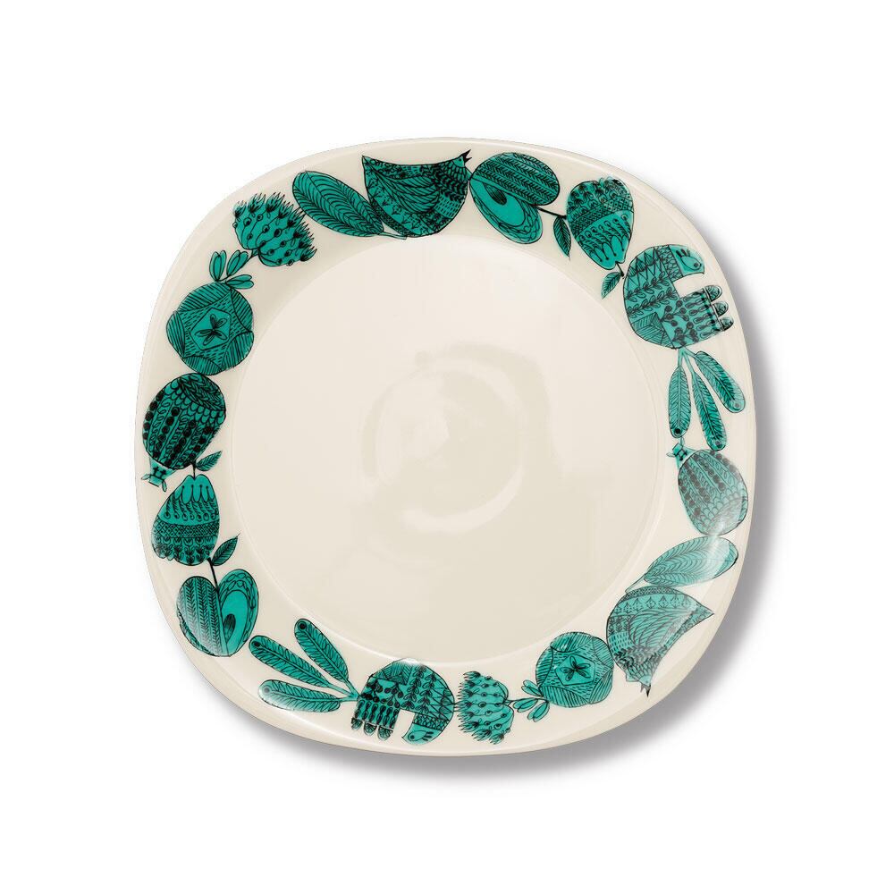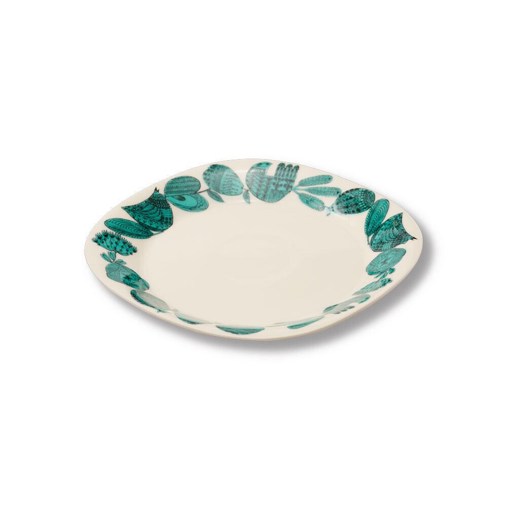広がりのある縁に入った柄は盛りつけたお料理をひきたて、多少汁気のあるお料理ものせられます。