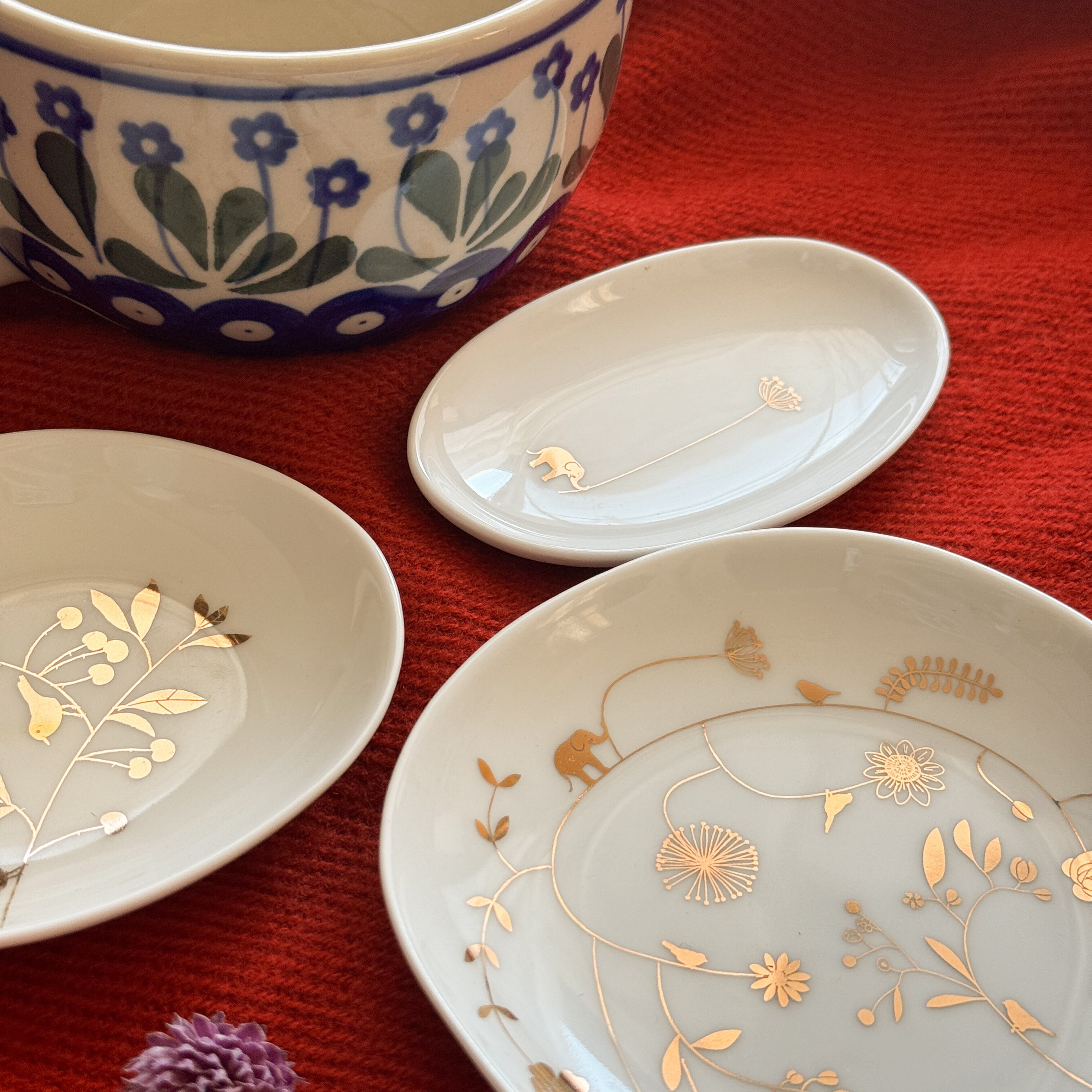 3柄1セットの小物置きとしてもお皿としても使える小さな磁器製プレート