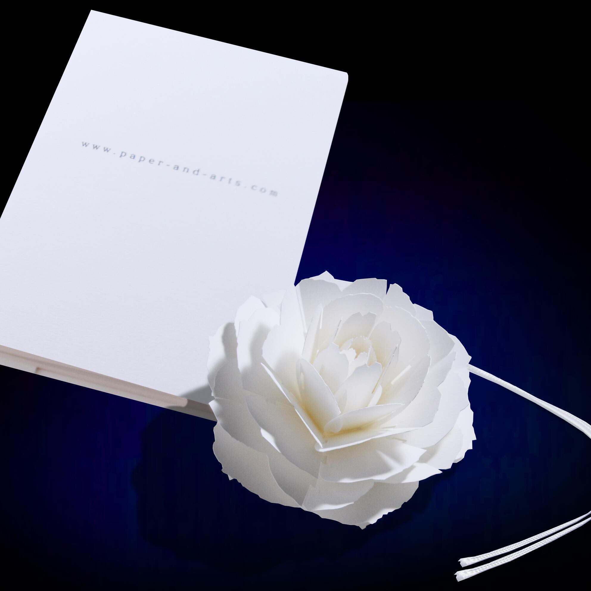 本のページを開き、紐を持つと紙のバラが咲くように現れます。