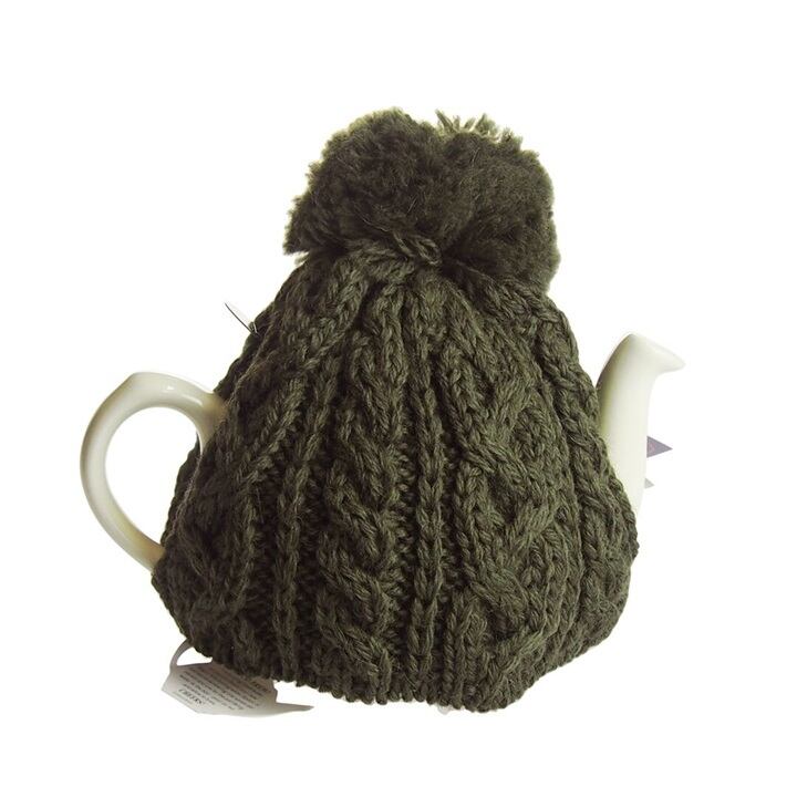 細かく丁寧な編み柄がティーポットのころんとしたフォルムを優しく包みます。